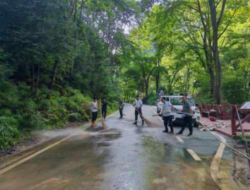 暴雨后,10公里的大众游览区域内,共有大小14处滑坡,党员志愿服务队立即采取清淤通路、拉警戒线、设置警示牌、制定应急撤离路线等措施,充分保障区内生产生活的安全出行。