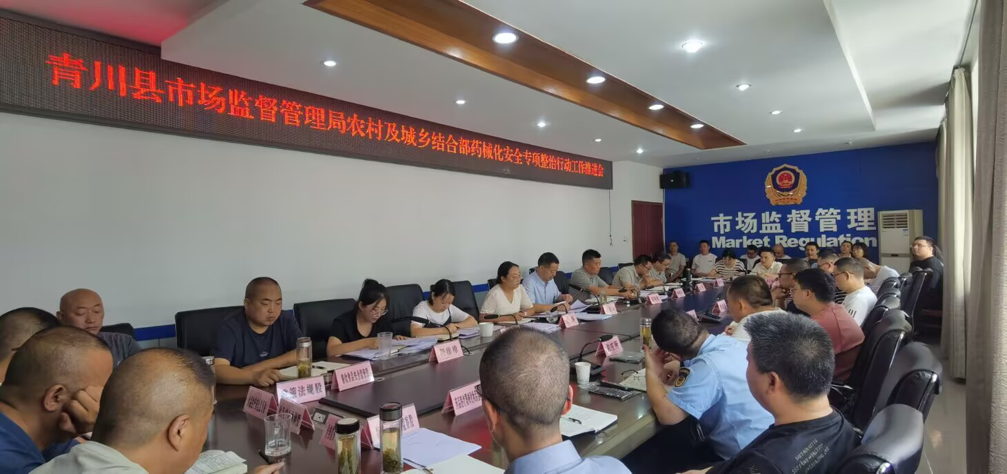 为进一步加强药械化安全监管,切实保障群众用药用械用安全,7月22日,青川县市场监督管理局召开药械化三大专项行动(药品经营环节清源行动、农村及城乡结合部药械化安全专项整治行动、集采医疗器械质量安全风险防控专项行动)推进会。
