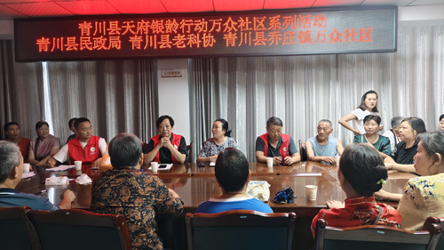 8 月 20 日,青川县民政局联合县老科协组织“天府银龄志愿服务队”走进乔庄镇万众社区,开展“送科技、送文化、送健康”志愿服务活动。活动现场人头攒动,100 余名干部群众早早来到现场等候,大家带着对知识的渴望,积极参与其中,在轻松愉快的氛围中收获了实用知识与暖心关怀。