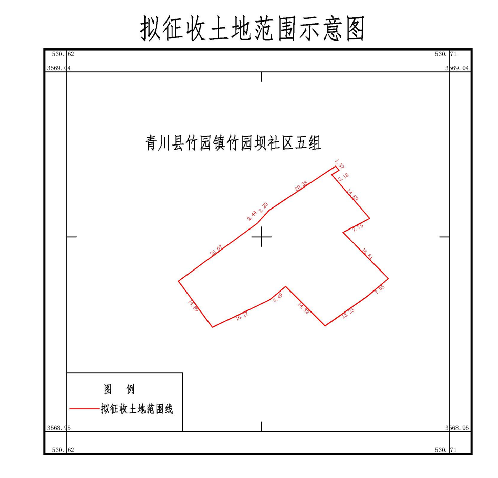 拟征收土地位于青川县建峰镇青峰社区1组、青川县竹园镇竹园社区5组范围内,范围见《拟征收土地范围示意图》(附后),拟征收土地的权属、面积等以土地现状调查面积为准。