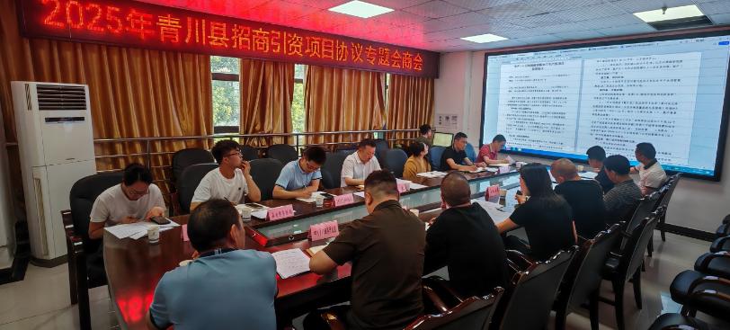 会上,县发展和改革局、四川青川经济开发区、县民政局、木鱼镇依次汇报了青川华纳新材料分布式光伏、配电柜成套生产加工、玻璃酒瓶加工生产线、沙州托老中心、青溪清江源康养中心、油橄榄产业园区及精深加工等项目情况。各参会单位围绕项目协议内容,从政策合规、要素保障、风险防控等方面深入研讨,对项目协议进行全面研判,为项目后续签约落地推进筑牢基础。