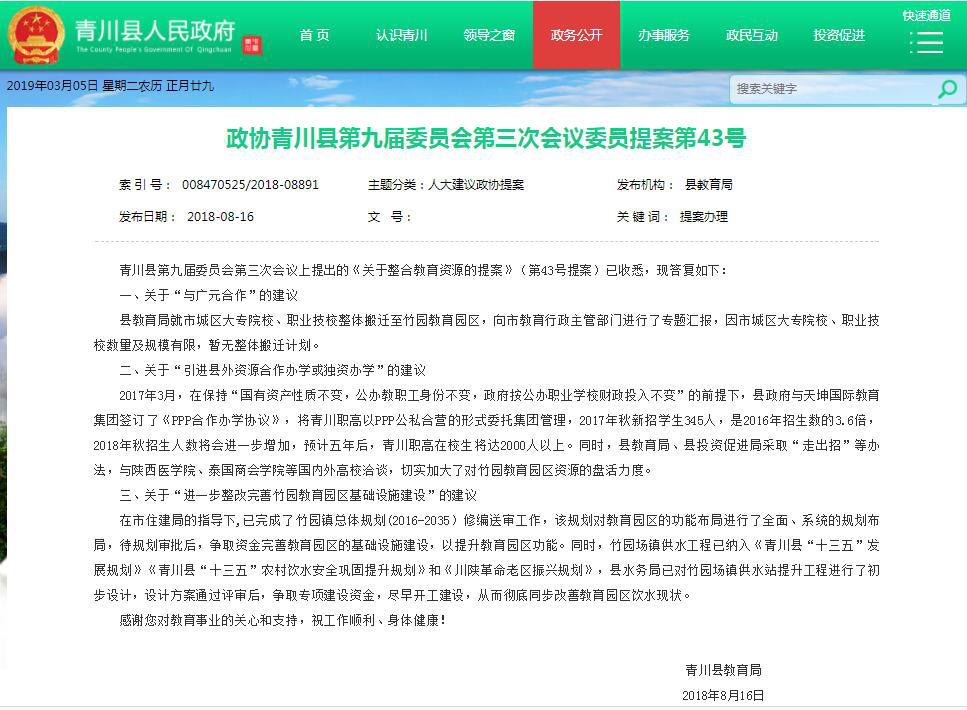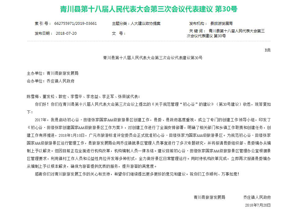 青川县2018年度政府信息公开年度报告