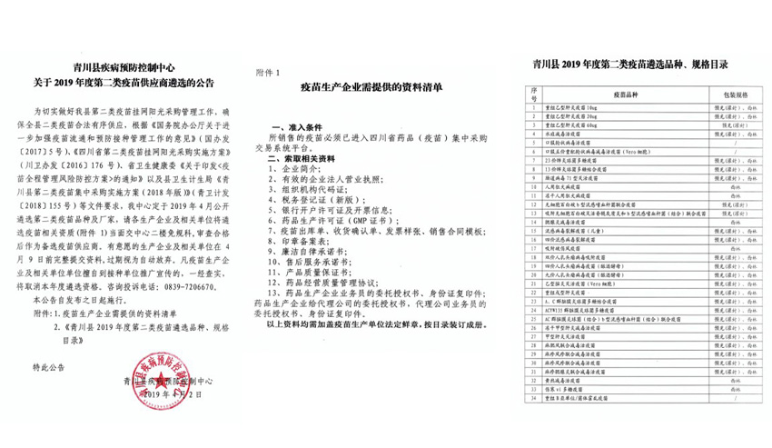青川县疾控中心2019年第二类疫苗供应商遴选公告