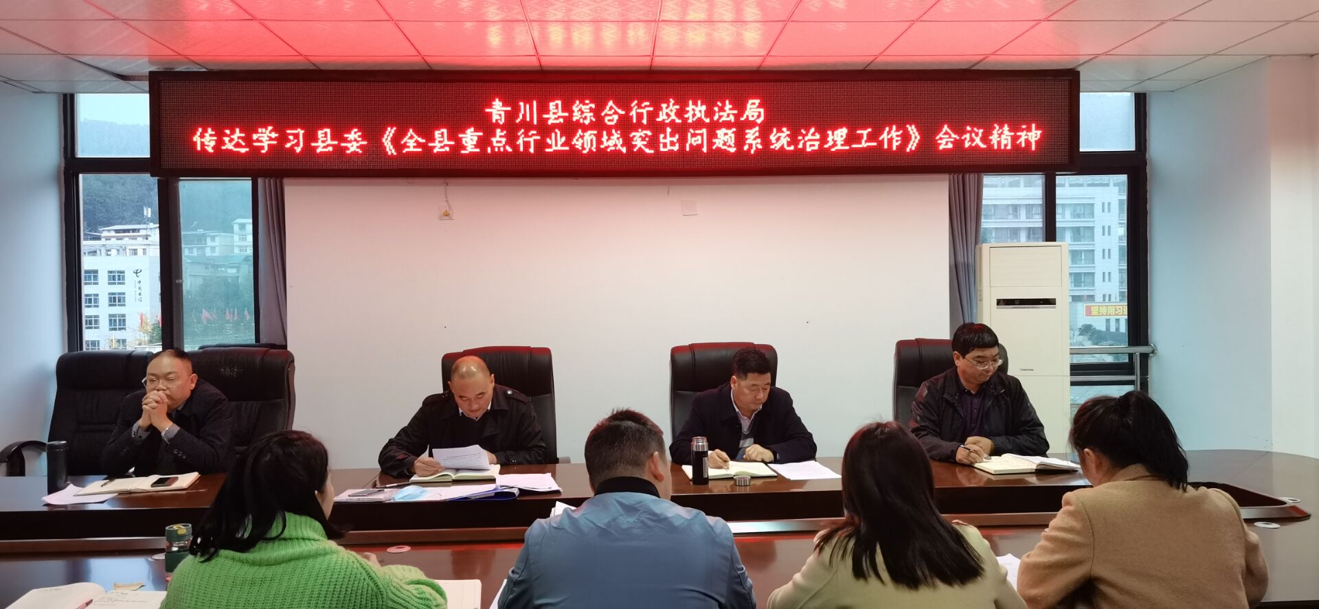 11月2日晚上,青川县综合行政执法局召开传达县纪委关于“全县重点行业领域突出问题系统治理工作”会议精神党组学习会,党组书记、局长李仲安主持会议。