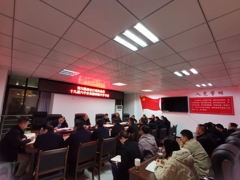 近期,青川县综合行政执法局召开专题会议,传达学习党的十九届六中全会精神,党组书记、局长李仲安主持会议。会上原文学习了《中国共产党第十九届中央委员会第六次全体会议公报》等内容。
