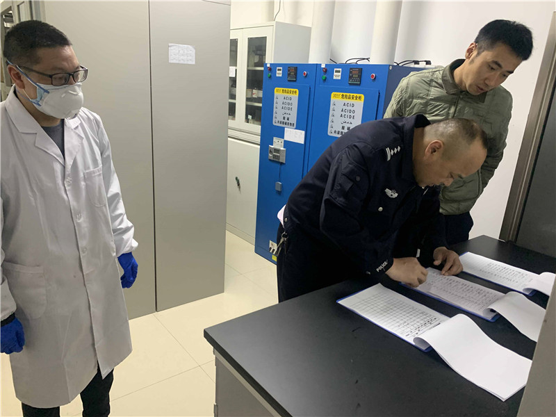 检查中,民警采取实地查看和查阅台账相结合的方式,具体检查企业在购买、储存和使用易制毒化学品等环节,是否严格执行国家相关法律法规,在购买过程中是否及时向公安机关备案等情况。同时,民警要求企业管理人员要严格遵守《易制毒化学品管理条例》,强化责任,提高企业从业人员自我管理能力,并就易制毒化学品的管理、保管场所、视频监控、存放器具等进行了检查。要求企业要建立完善的管理台账制度、落实仓库双人双锁制度,确保合法合规使用易制毒化学品。对在检查中发现的问题,民警进行了现场指导,并督促限时整改。