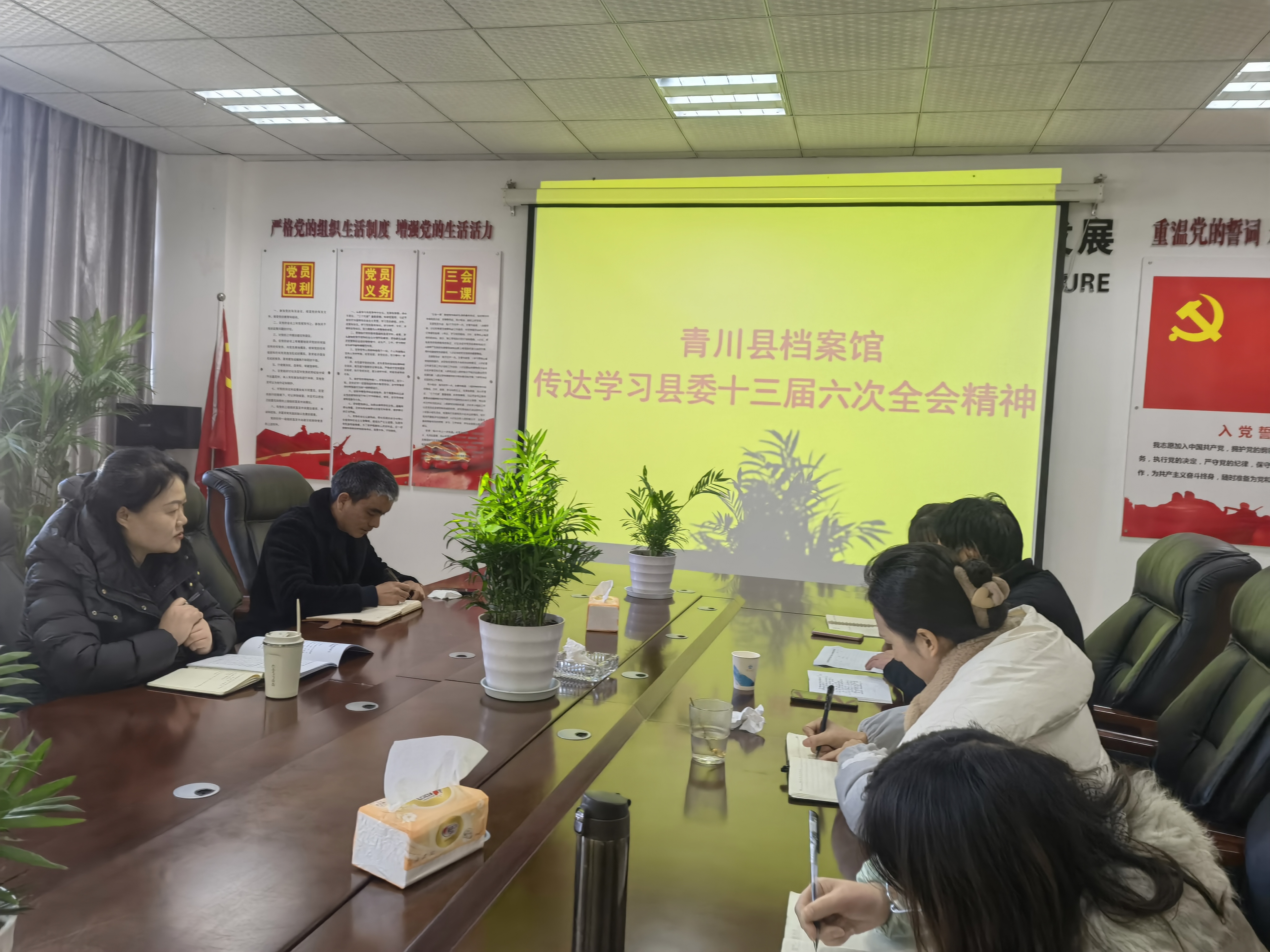 12月31日上午,青川县档案馆召开会议,集中传达学习县委十三届六次全会精神。