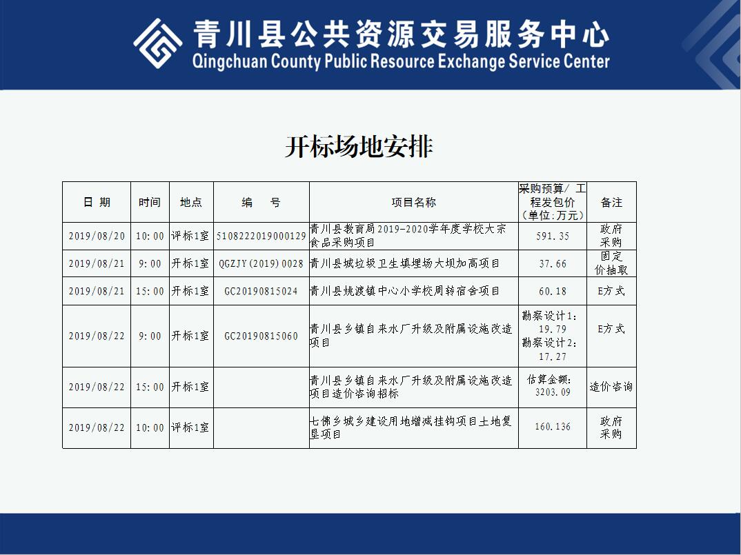 2019年8月19日-23日开标场地安排