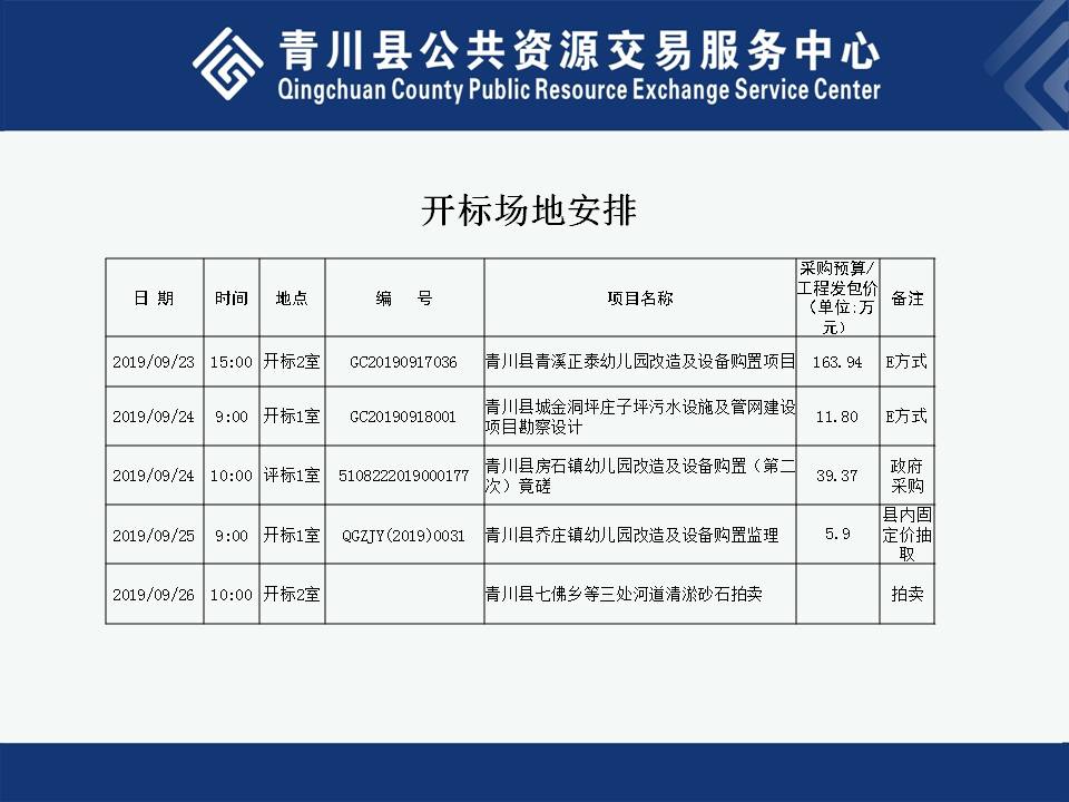 2019年9月23日-27日开标场地安排
