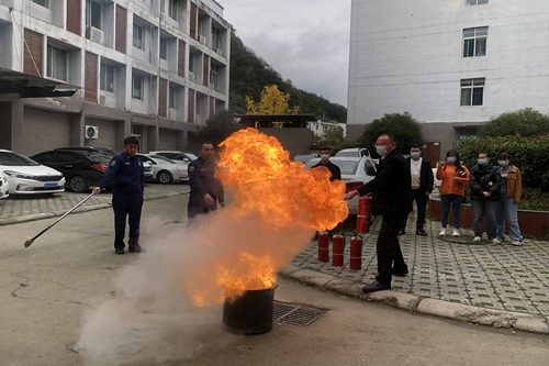 理论培训结束后,指导员在局楼下空旷地带现场详细介绍了灭火器的基础知识,演示了使用方法,并手把手指导所有参会人员进行了灭火器灭火操练。(青川县卫生健康局 张萌)