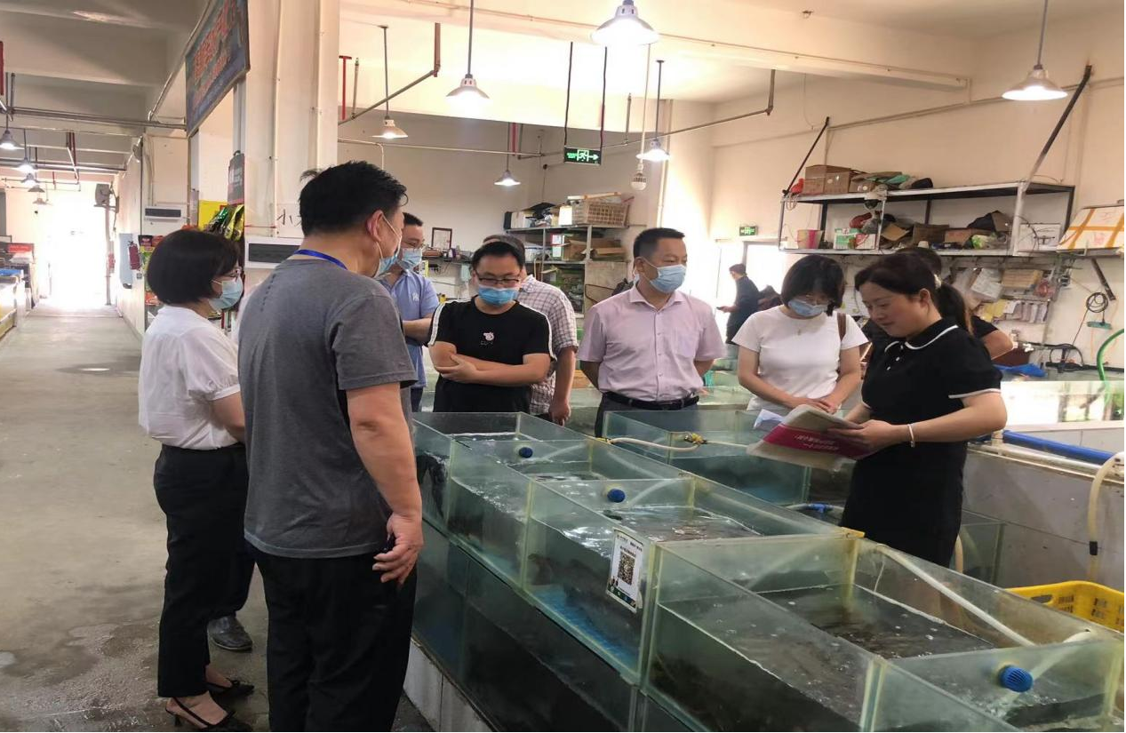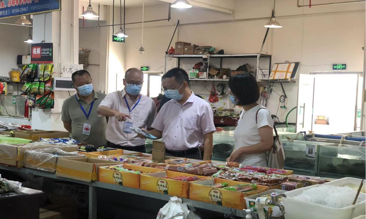 6月23日,由省食安办成员单位省市场监督管理局调研员崔涛、省农业农村厅工程师沈崇胥、省商务厅主任陈成、省标准化研究院工程师张毅等组成的调研组一行,到我县农特产品交易市场现场调研农产品集中交易市场等级技术规范工作。