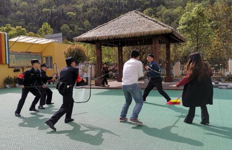 为了提高幼儿园处置突发暴力事件的应急能力,4月9日上午,青川乔庄幼儿园580名师幼携手乔庄镇派出所开展了防暴力伤害演练活动。