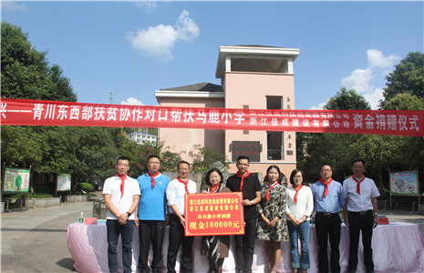 9月25日,浙江佳成科技创业园有限公司爱心捐赠仪式在马鹿小学隆重举行,浙江吴兴区教育局副局长邵慧芳、青川县教育党工委委员黄勇等领导和马鹿小学全体师生参加了捐赠仪式。