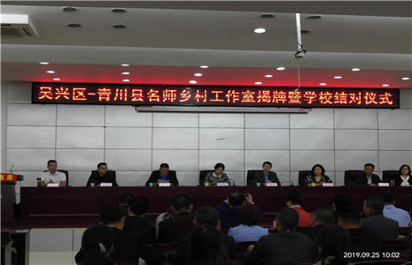 2019年9月25日,吴兴区-青川县名师乡村工作室揭牌暨学校结对仪式在青川县教育局正式举行,两地教育主管领导、名师及挂牌学校校长等人参会。