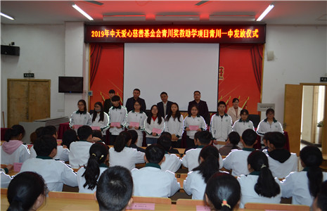 11月8日下午,四川省青川第一高级中学(青川一中)在实验楼会议室举行了中天爱心慈善基金会青川奖教助学金发放仪式。中天建设集团西南公司工会分会主席何涛、青川县教育局副局长李玖凯、中天建设集团西南公司办公室文宣干事胡松杨、青川县教育局教育基金会主任周晓燕等领导出席了发放仪式,青川一中副校长董玉龙主持发放仪式。青川一中70名优秀贫困学生和10名优秀教师现场领到了奖教助学金,本次共计发放奖教助学金10万元。