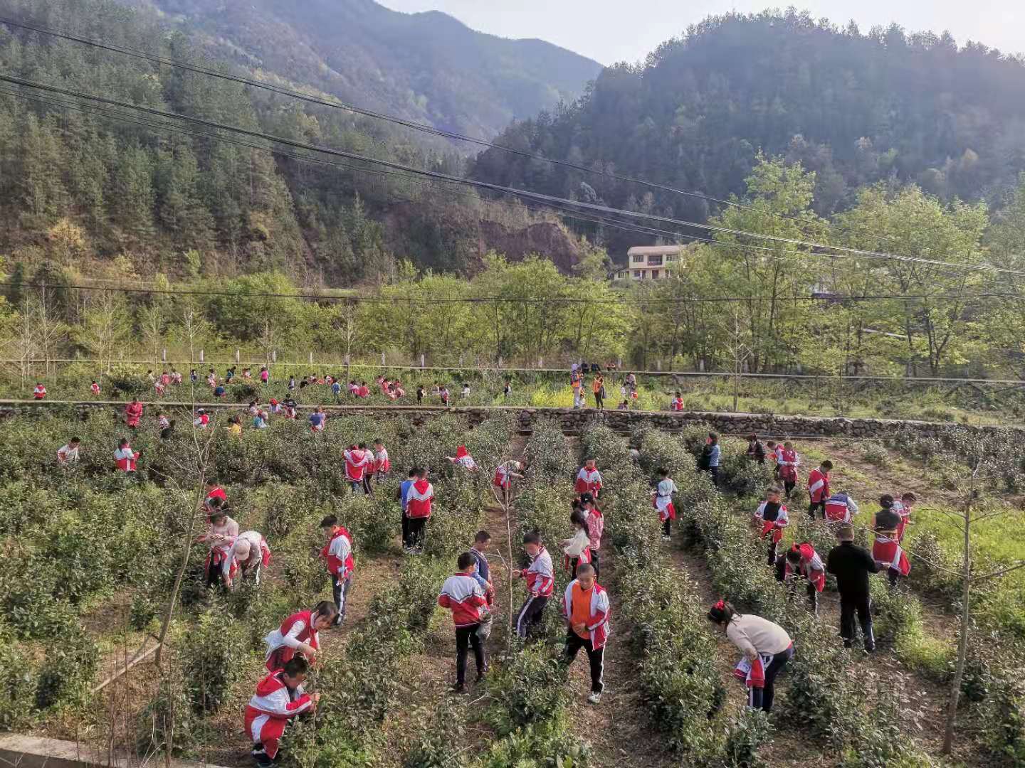 3月24日下午,广元青年国际旅行社带领广元南鹰小学4年级600余名师生到七佛乡茶林坝等茶园分批开展采茶研学活动。