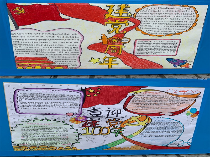 全县各学校精心策划、认真组织,在原有的校园文化建设基础上增设了丰富的红色元素,如庆祝建党100周年的手抄报、黑板报、展板专栏、横幅标语等;举办适合青少年儿童群体开展的寓教于乐的主题活动,如诗歌朗诵比赛、红歌传唱比赛、舞蹈表演类文艺汇演、书法比赛、观看红色电影、手工制作国旗、党旗等。通过丰富的活动,将爱党爱国的情怀根植于少年儿童的心中和行动中。