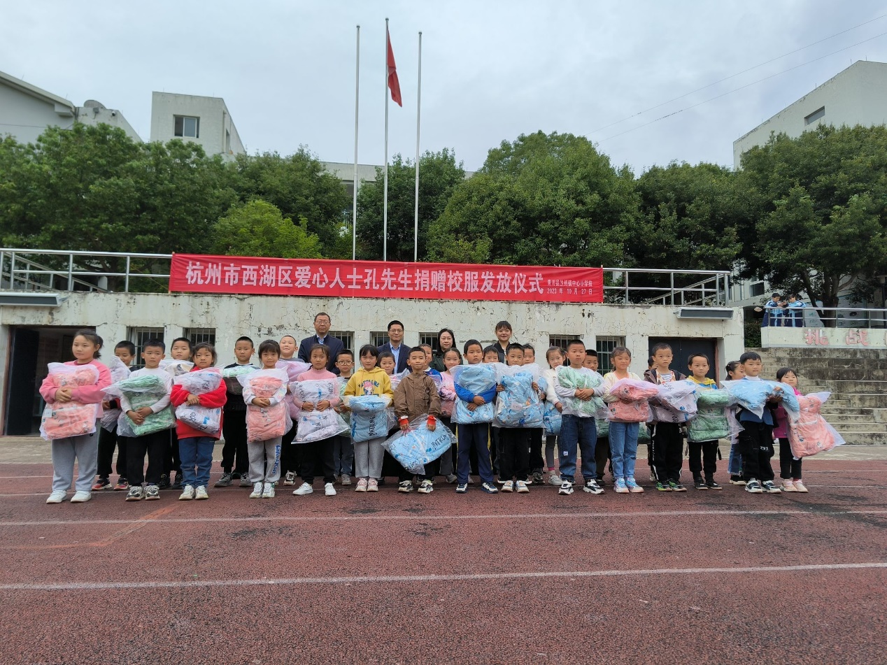 严冬未至,温暖先行。10月27日,浙江省杭州市西湖区爱心人士孔先生“献爱心、送真情”捐赠校服发放仪式在青川县沙州镇中心小学校举行。