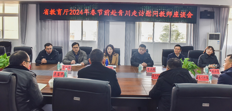1月22日下午,省委教育工委委员,省教育厅党组成员、副厅长石静一行4人赴青川走访慰问教师代表并在青川职高召开座谈会。市委教育工委书记、市教育局党组书记黄廷全,青川县委常委、宣传部部长佘锦,县委教育工委书记,县教育局党组书记、局长吴应华等参加慰问活动。
