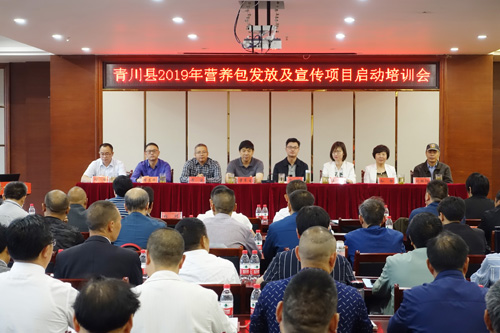 5月28日,中国儿童少年基金会联合中国疾病预防控制中心及家乐福基金会3方共同发起的,“营养包发放及宣传项目启动培训会”在四川省青川县举行。中国疾病预防控制中心营养与健康所霍军生主任、孙静主任、黄建主任,家乐福中国、家乐福集团食品安全任婧总监、林靖秘书长,省疾控中心刘祖阳主任医师,广元市疾控中心副主任付瑜、青川县副县长雷挺等出席了会议。县卫生健康局、县疾控中心、县妇幼保健计划生育服务中心相关人员,14个乡镇卫生院疾控人员以及辖区村医等120多人参加了会议。