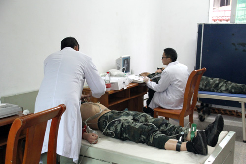 此次体检项目包括心电图、B超、DR、血常规、肝肾功能等十余项内容。在体检过程中,该院还派专业体检工作人员为官兵们做引导,营造了军民一家亲的和谐氛围。
