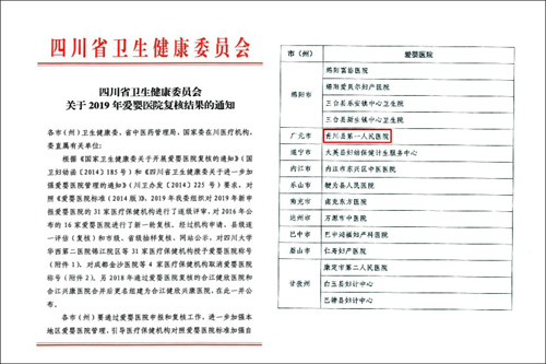 青川县第一人民医院顺利通过评审,2020年1月15日,被四川省卫生健康委员会确定为爱婴医院。