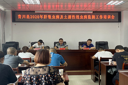 在省疾控中心贫困地区城乡医疗卫生对口支援“传帮带”工程的全力帮助支持下,我县顺利启动2020年肝吸虫病及土源性线虫病监测项目工作。9月2日,县疾控中心组织召开培训会,5个监测点卫生院负责人、疾控工作人员、村医生和县疾控中心相关科室工作人员共计30人参会,县疾控中心副主任宋友科主持会议。
