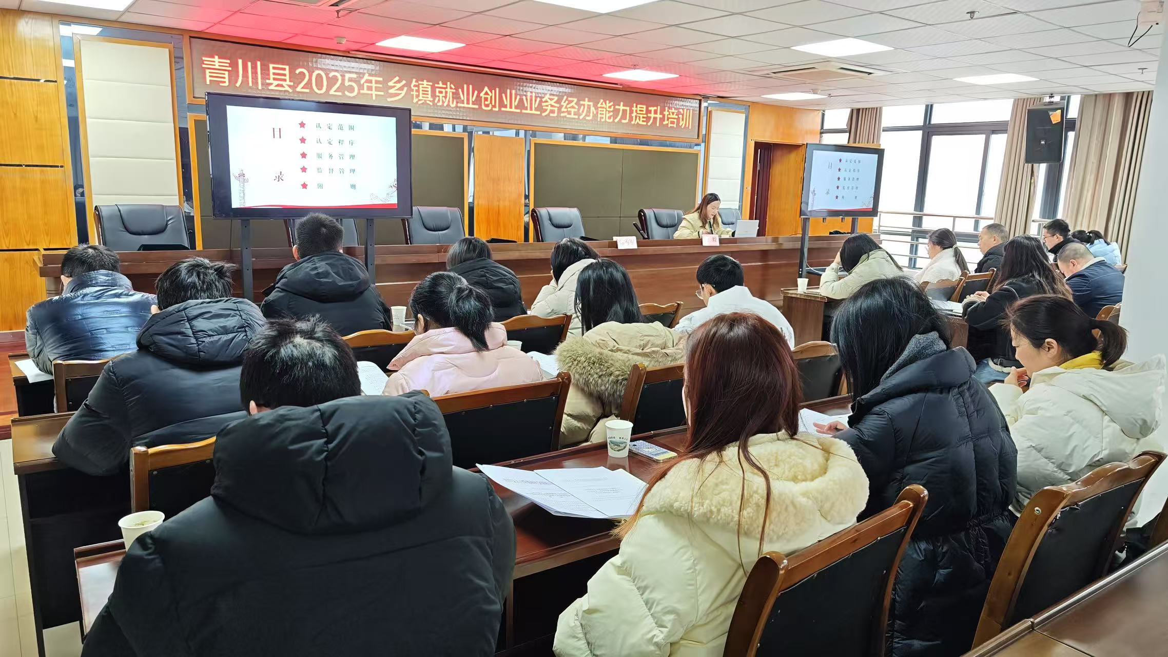 为进一步加强全县就业创业服务队伍建设,不断提高干部综合素质及业务水平,提升就业创业服务质量。1月9日上午,青川县人力资源和社会保障局举办了2025年乡镇就业创业业务经办能力提升培训班,参加此次培训班的有全县20个乡镇及相关部门从事公共就业服务的工作人员共25人。