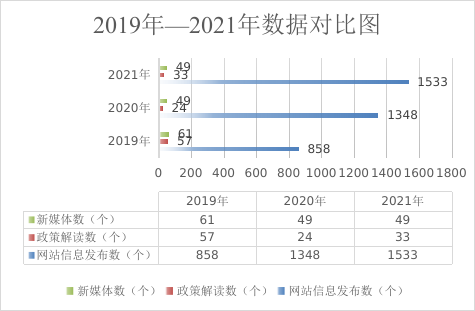 2021年,县政府办公室通过县政府门户网站主动公开政府信息1190条,其中,发布县政府办公室财政预决算及三公经费信息3条,发布重要会议动态31条,公开政策文件13个,政策解读33条,发布民意征集3期,回复政策咨询7条,开展调查问卷4期,印发政府网站及新媒体监测通报12期。