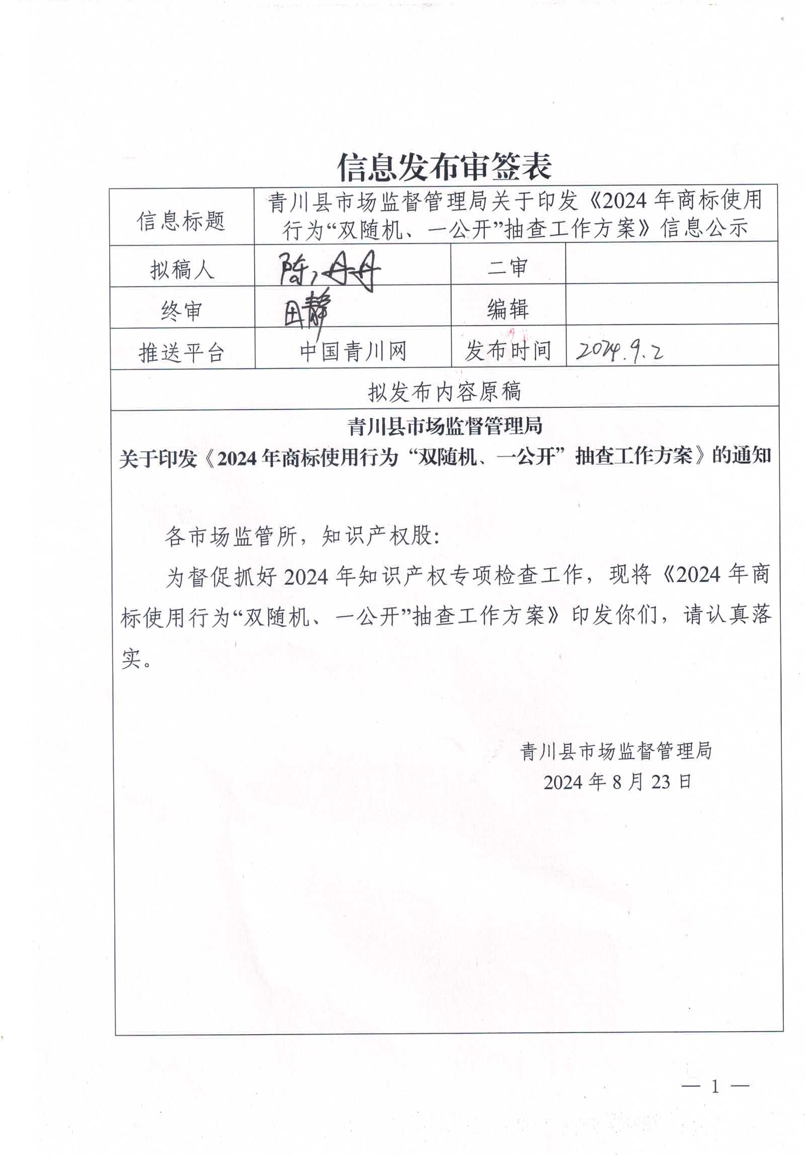 2024年商标使用行为“双随机、一公开”抽查工作方案