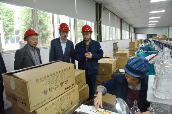重庆昊晟玻璃股份有限公司成立于2001年,是一家专业从事高档玻璃酒瓶、玻璃晶品设计、生产和销售的大型技术企业。李方甫一行实地参观了其生产车间及操作流程,详细了解了企业的产品、技术研发、综合运营等情况。李方甫指出,青川资源禀赋优越,产业特色鲜明,基础配套完善,区位优势明显,矿产资源丰富,具有储量大、种类多、品质高等特点,发展潜力巨大、前景广阔,是投资兴业的热土。青川真诚欢迎企业前来投资,期待双方聚焦企业需求与青川实际,进一步加强交流对接,积极探索合作模式,努力实现投资效益最大化,促成互利共赢。青川将秉持“亲商、爱商、重商、富商”的理念,在土地供应、水电气路等方面给予大力支持,让企业家在青川投资放心、发展安心。