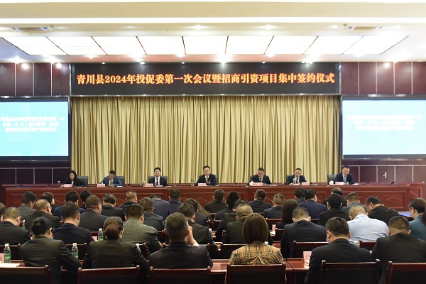 4月19日,青川县 2024 年投促委首次全体(扩大)会议暨招商引资项目集中签约仪式于行政中心举行。此次会议旨在对一季度招商项目进行集中签约,总结2023年招商引资工作,剖析当前形势,并对下一阶段工作做出安排部署。县委副书记、县长程远泽出席会议并讲话。