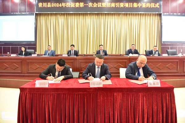 程远泽强调,招商引资是发展的源头活水,各乡镇、部门要进一步提高政治站位,紧贴国省政策,紧跟重大部署,紧扣重点产业,明确招商重点,加快构建特色鲜明、优势突出的高质量发展体系。要进一步提升招商质效,坚持县领导挂联、专班推进,持续健全依法诚信的法治环境,优化市场主体的发展环境,确保项目落地生根、开花结果,推动青川经济社会高质量发展。要进一步做好招商保障,坚持统筹兼顾,强化协调配合,加强队伍建设,健全完善督导、考核、通报、考评等制度,形成高效、有序、协同的招商新格局,推动招商工作不断迈上新的台阶。要进一步加快项目建设,严格按照协议约定的建设内容、时间进度、投资强度,组织调配精干力量,力争早开工、快建设、早竣工、早投产。同时,要增强安全观念,严格遵守安全生产规定,确保安全生产责任落实落细,坚决杜绝安全生产事故。