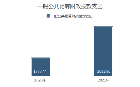 2021年一般公共预算财政拨款支出2092.96万元,占本年支出合计的100%。与2020年相比,一般公共预算财政拨款支出增加315.52万元,增长17.75%。。主要变动原因是招考录用在编人员增加,人员类开支增多。