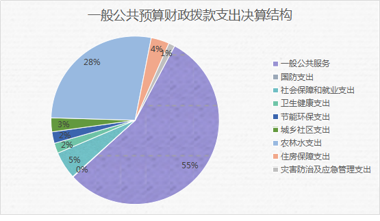 2021年一般公共预算财政拨款支出2092.96万元,主要用于以下方面:一般公共服务(类)支出1160.3万元,占55%;国防支出(类)2.00万元,占0.1%;社会保障和就业支出(类)110.73万元,占5%;卫生健康支出(类)支出41.14万元,占2%;节能环保支出(类)支出46.25万元,占2%;城乡社区支出(类)56.16万元,占3%;农林水支出(类)577.9万元,占28%;住房保障支出(类)73.47万元,占4%。灾害防治及应急管理支出(类)25万元,占1%。(注:数据来源于财决01-1表,仅罗列本部门涉及的全部功能分类科目,至类级。)