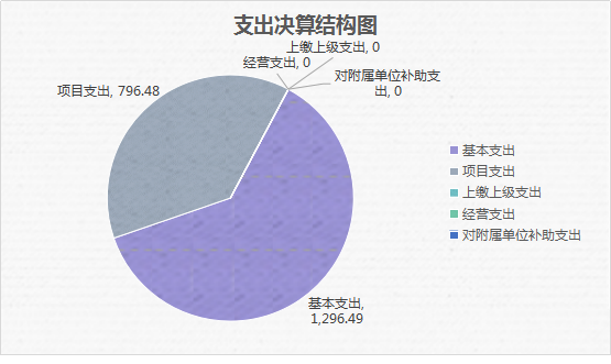 2021年本年支出合计2092.96万元,其中:基本支出1296.49万元,占61.95%;项目支出796.48万元,占38.05%;上缴上级支出0万元,占0%;经营支出0万元,占0%;对附属单位补助支出0万元,占0%。
