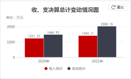 2021年度收入总计1394.11万元,支出总计2008.15万元。与2020年相比,收入总计增加172.89万元,增长14%。主要变动原因是招考录用在编人员增加导致的辖区人员类收入增加。与2020年相比,支出总计增加541.22万元,增长37%。主要变动原因是招考录用在编人员增加,人员类开支增多。