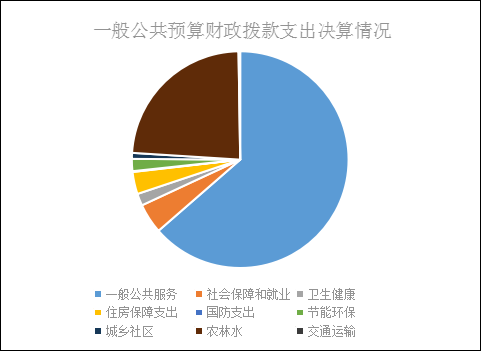 2021年一般公共预算财政拨款支出4040.61万元,主要用于以下方面:一般公共服务(类)支出2569.74万元,占63.59%;教育支出(类)0万元,占0%;科学技术(类)支出0万元,占0%;文化旅游体育与传媒(类)支出0万元,占0%;社会保障和就业(类)支出181万元,占4.47%;卫生健康(类)支出72.6万元,占1.79%;住房保障(类)支出133.49万元,占3.3%;国防支出(类)支出4.9万元,占0.12%,节能环保(类)支出73.3万元,占1.81%;城乡社区(类)支出35.83万元,占0.88%;农林水(类)支出959.76万元,占23.75%;交通运输(类)支出10万元,占0.24%。