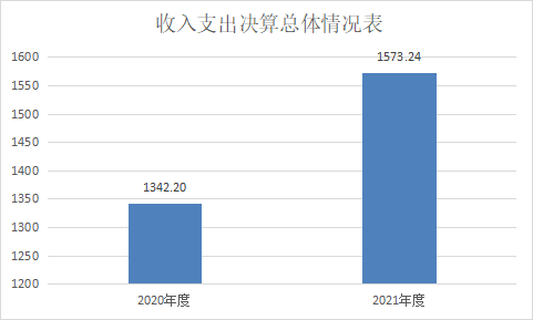 2021年度收、支总计1573.24万元。与2020年相比,收、支总计各增加231.04万元,增长17.21%。主要变动原因是人员工资调资和公用经费调标及项目增加。