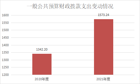 2021年一般公共预算财政拨款支出1573.24万元,占本年支出合计的100%。与2020年相比,一般公共预算财政拨款支出增加231.04万元,增长17.21%。主要变动原因是人员工资调资加和项目的增加。
