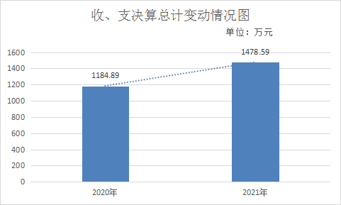 2021年度收、支总计1478.59万元。与2020年相比,收、支总计各增加293.7万元,增长24.79%。主要变动原因是人员增加。
