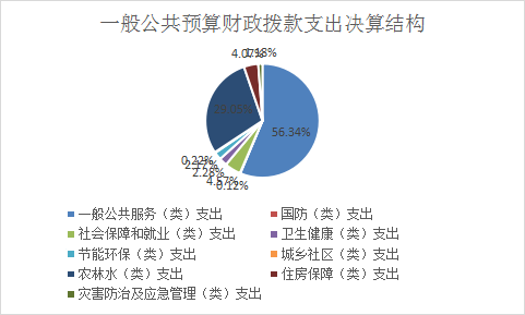 2021年一般公共预算财政拨款支出1355.54万元,主要用于以下方面:一般公共服务(类)支出763.72万元,占56.34%;国防支出(类)1.6万元,占0.12%;社会保障和就业(类)支出61.93万元,占4.57%;卫生健康(类)支出30.96万元,占2.28%;节能环保(类)支出29.44万元,占2.17%;城乡社区(类)支出3万元,占0.22%;农林水(类)支出393.69万元,占29.05%;住房保障(类)支出55.2万元,占4.07%;灾害防治及应急管理(类)支出16万元,占1.18%。