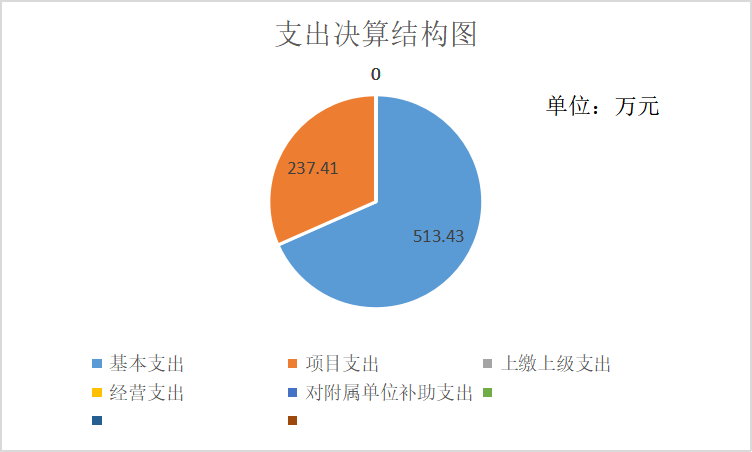 2021年本年支出合计750.84万元,其中:基本支出513.43万元,占68.38%;项目支出237.41万元,占31.62%;上缴上级支出0万元,占0.00%;经营支出0万元,占0.00%;对附属单位补助支出0万元,占0.00%。