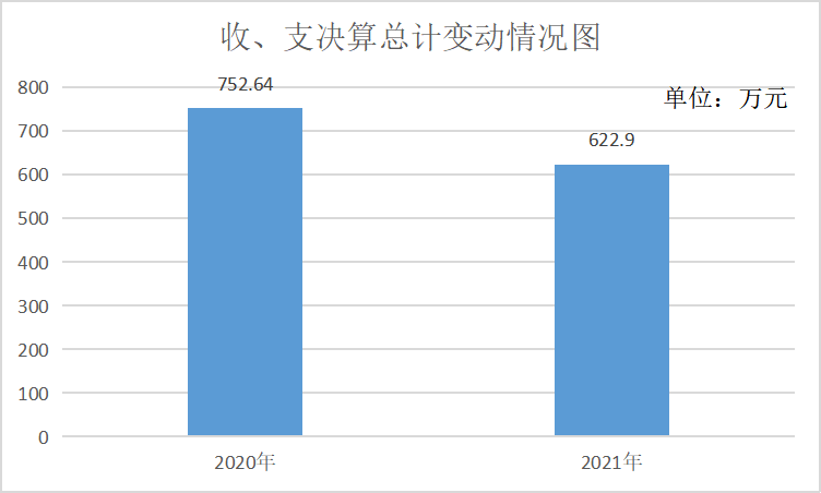 2021年度收、支总计752.64万元。与2020年相比,收、支总计各增加129.74万元,增长20.82%。主要变动原因是编制内实有人数增加,导致人员基本支出及日常事务公用支出收支增加。