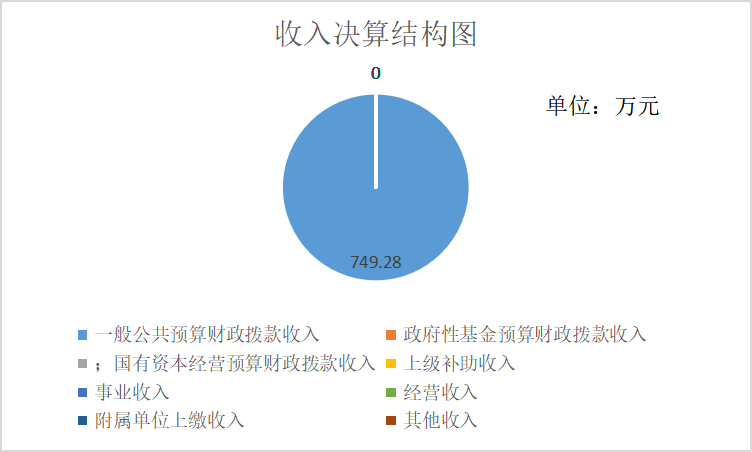 2021年本年收入合计749.28万元,其中:一般公共预算财政拨款收入749.28元,占100%;政府性基金预算财政拨款收入0万元,占0.00%;国有资本经营预算财政拨款收入0万元,占0.00%;上级补助收入0万元,占0.00%;事业收入0万元,占0.00%;经营收入0万元,占0.00%;附属单位上缴收入0万元,占0.00%;其他收入0万元,占0.00%。