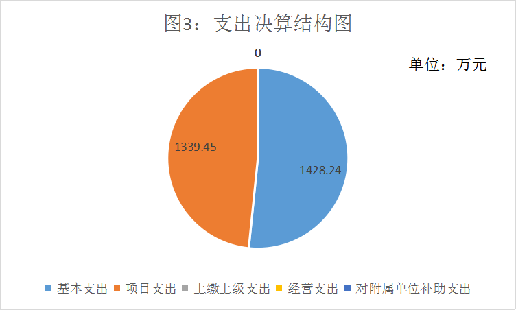 2021年本年支出合计2767.7万元,其中:基本支出1428.24万元,占51.6%;项目支出1339.45万元,占49.4%;上缴上级支出0万元,占0%;经营支出0万元,占0%;对附属单位补助支出0万元,占0%。