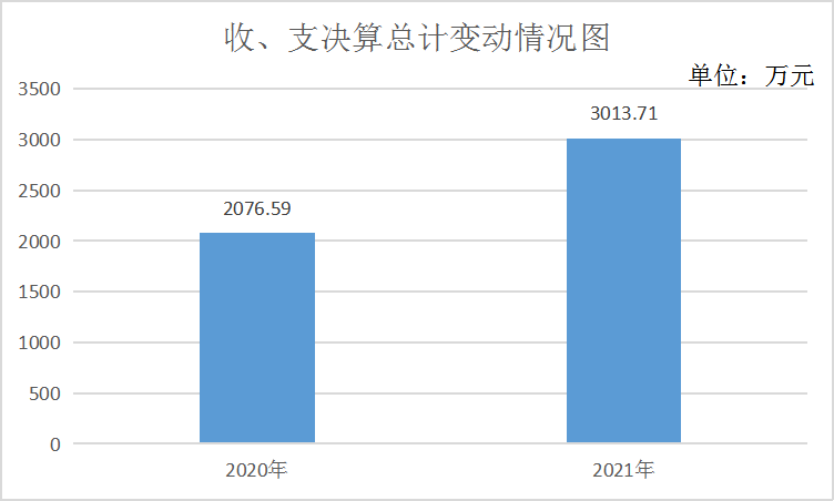 2021年度收、支总计3013.71万元。与2020年相比,收、支总计各增加937.12万元,增长45.13%。主要变动原因是区划调整后我单位编制内实有人数增加,导致人员基本支出及日常事务公用支出收支增加,新增拆迁资金等。