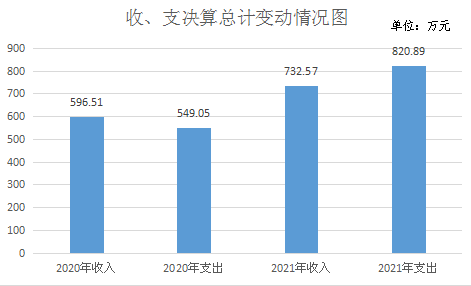 2021年度收、支总计732.57万元、820.89万元(含年初结转)。与2020年相比,收、支各总计增加136.06万元、271.84万元,增长22.81%、49.51%。主要变动原因是我乡编制内实有人数增加,基本支出、日常事务公用支出及项目支出等收支增加。