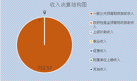 2021年本年收入合计732.57万元,其中:一般公共预算财政拨款收入732.57万元,占100%;政府性基金预算财政拨款收入0万元,占0%;上级补助收入0万元,占0%;事业收入0万元,占0%;经营收入0万元,占比0%;附属单位上缴收入0万元,占0%;其他收入0万元,占0%。