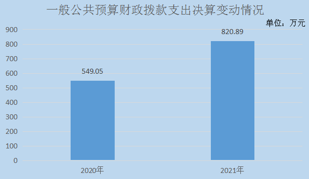 (二)单位财政资金支出情况。2021年公共预算一般支出820.89万元,较2020年增加271.83万元,增加49.51%。